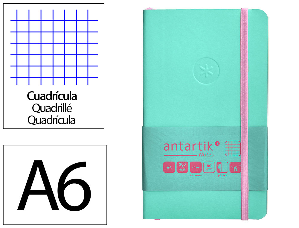 Cuaderno con gomilla antartik notes tapa blanda a6 cuadricula negro 100 hojas 80 gr fsc