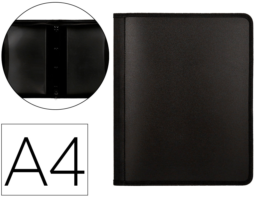 Esta carpeta multifin está diseñada para ofrecer una solución práctica y resistente para la organización de documentos en formato folio o DIN A4. Fabricada en PVC opaco negro, combina durabilidad con un diseño sobrio y profesional, ideal para ambientes de oficina, estudio o uso personal. Su mecanismo de 16 anillas con diámetro de 39 mm permite almacenar un volumen considerable de hojas, manteniéndolas bien sujetas y en óptimas condiciones.